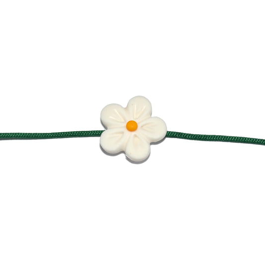Βραχιόλι λουλουδάκι λευκό γλυπτό στο χέρι με πολυμερικό πηλό
