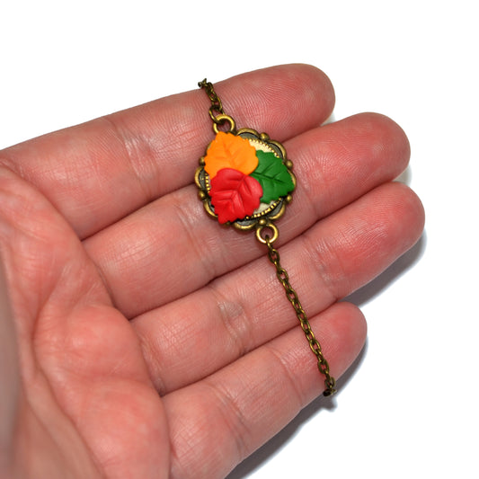 Ρομαντικό βραχιόλι με φθινοπωρινά φύλλα σε vintage μπρονζέ βάση