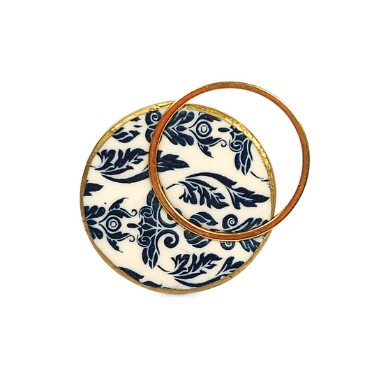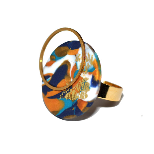 Στρογγυλό δαχτυλίδι μπλε χρυσό μαρμαρωτό από πολυμερικό πηλό και ατσάλινο στοιχείο