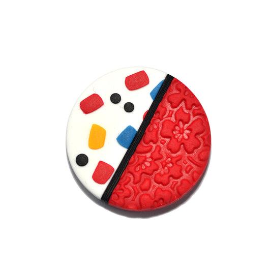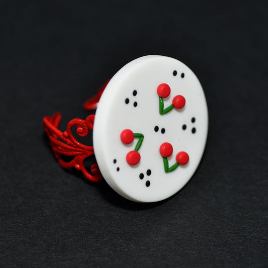 Στρογγυλό δαχτυλίδι με ασπρόμαυρο καρό και κόκκινο από πολυμερικό πηλό