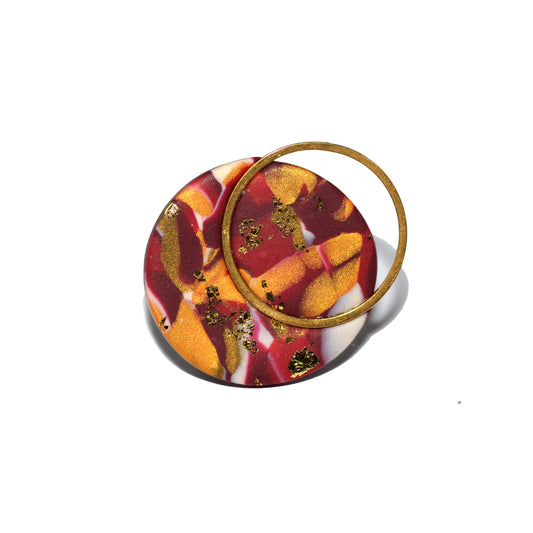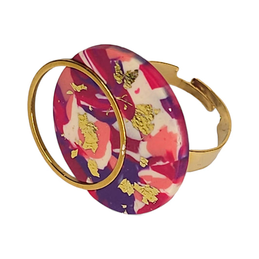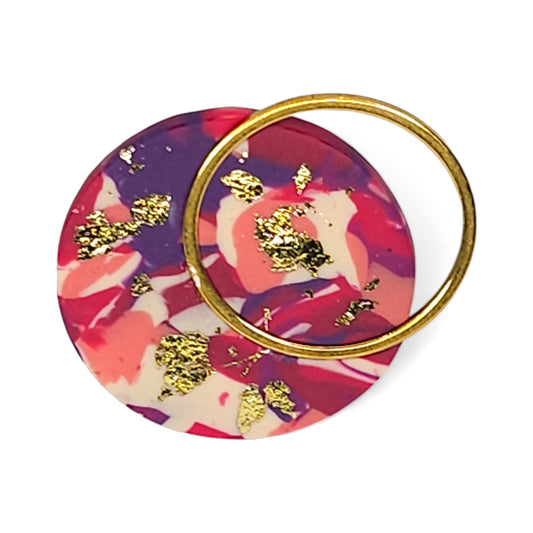 Στρογγυλό δαχτυλίδι μωβ χρυσό μαρμαρωτό από πολυμερικό πηλό και ατσάλινο στοιχείο