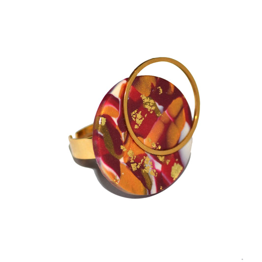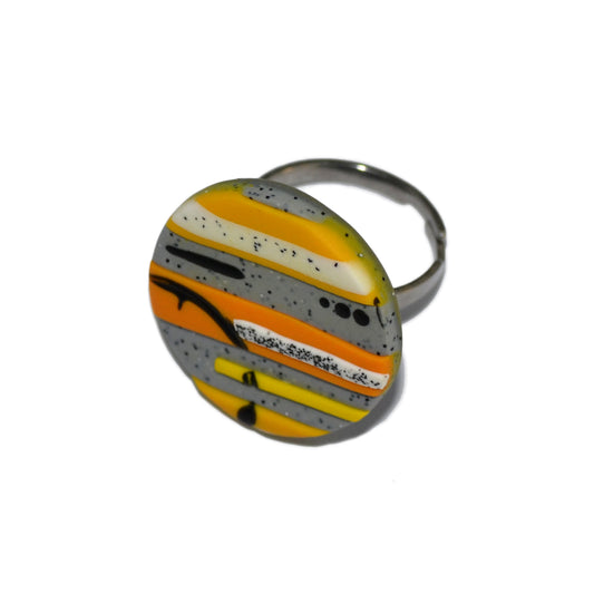 Στρογγυλά ρυθμιζόμενο δαχτυλίδι με μοτίβο Mondrian από πολυμερικό πηλό