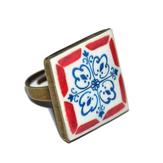Δαχτυλίδι μεγάλο τετράγωνο μπρονζέ folk art tiles