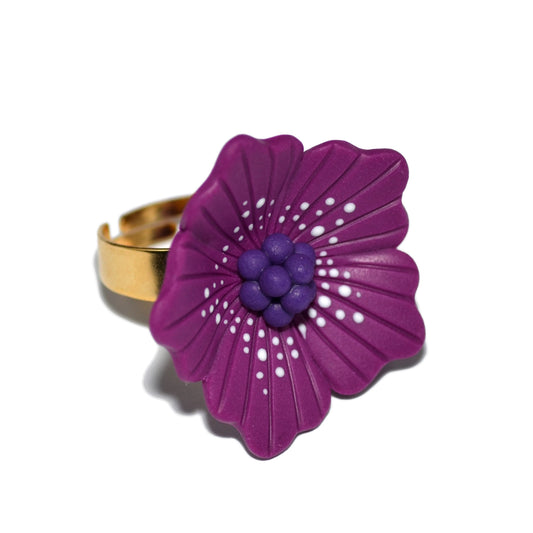 Δαχτυλίδι λουλούδι κόκκινο από πολυμερικό πηλό με ατσάλινη βάση
