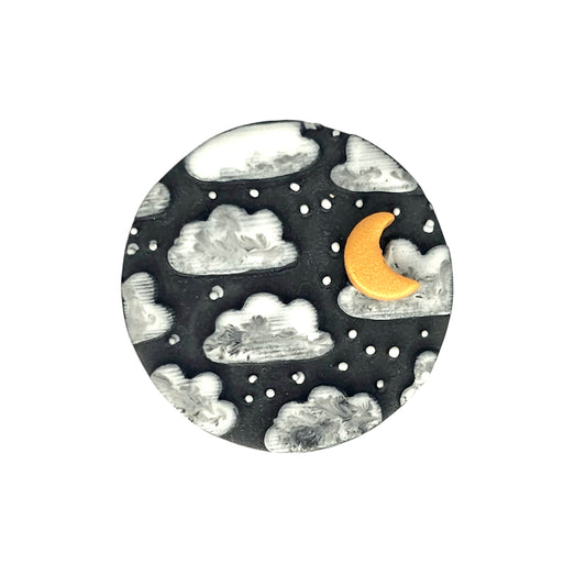 Δαχτυλίδι στρογγυλό γκρι με άσπρα συννεφάκια από πολυμερικό πηλό