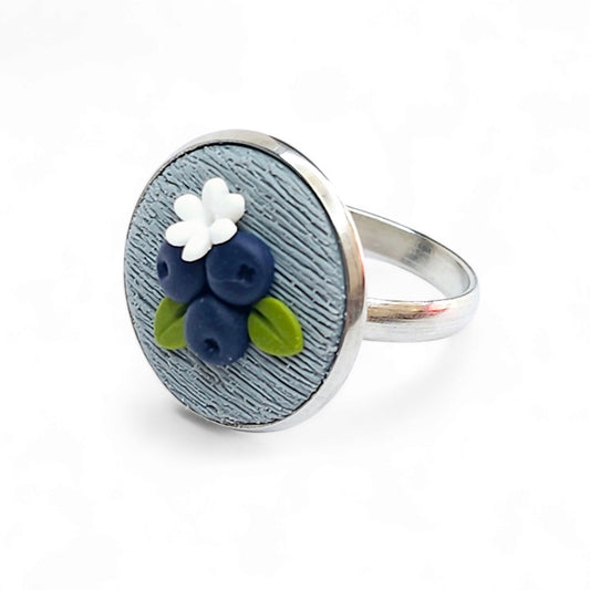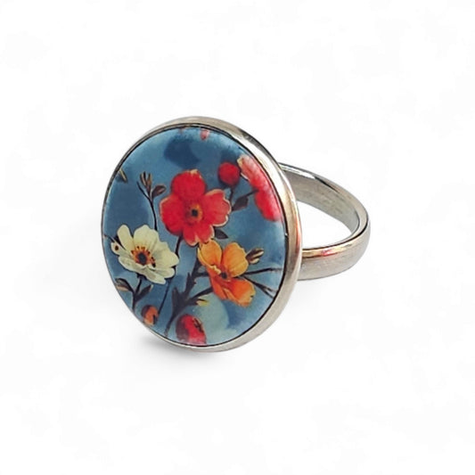 Στρογγυλό δαχτυλίδι με μοτίβο λουλούδια του αγρού από πολυμερικό πηλό και ατσάλινη βάση