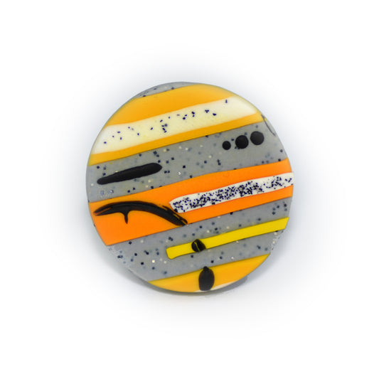 Στρογγυλό δαχτυλίδι σε γκρι χρυσό μαρμαρωτό μοτίβο από πολυμερικό πηλό με ατσάλινη βάση