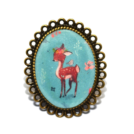 Δαχτυλίδι οβάλ vintage ρυθμιζόμενο με ελαφάκι