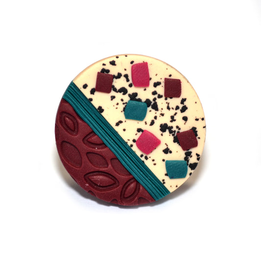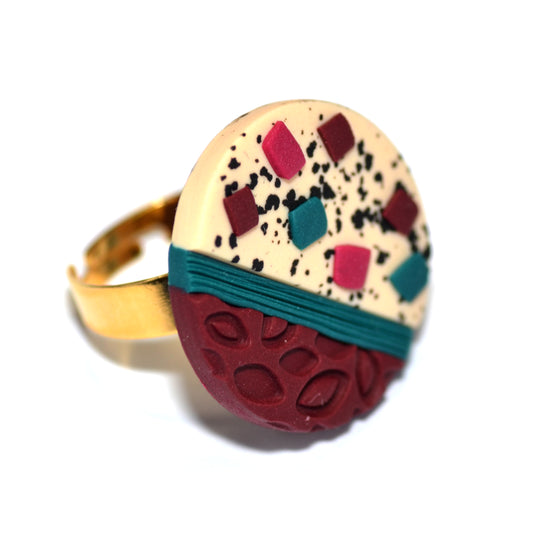 Στρογγυλό δαχτυλίδι μπεζ πιτσιλωτό με μπορντό φούξια γαλαζοπράσινο
