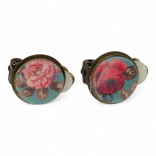 Σκουλαρικάκια κλιπς για αυτιά χωρίς τρύπες της συλλογής Vintage roses σε μπρονζέ βάσεις