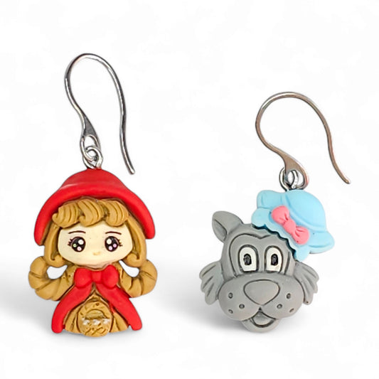Ανόμοια κρεμαστά σκουλαρίκια κοκκινοσκουφίτσα με τον κακό τον λύκο