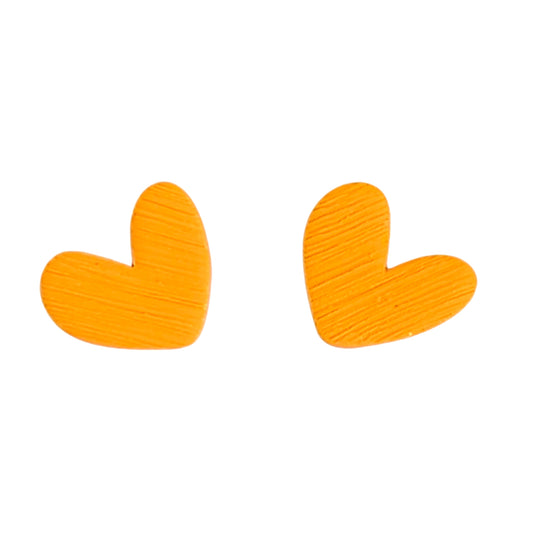 Καρφωτά σκουλαρίκια ανάγλυφες κίτρινες καρδιές από πολυμερικό πηλό