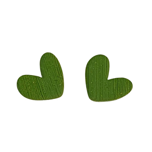 Καρφωτά σκουλαρίκια ανάγλυφες πράσινες καρδιές από πολυμερικό πηλό