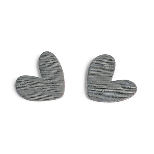 Καρφωτά σκουλαρίκια ανάγλυφες γκρι καρδιές από πολυμερικό πηλό