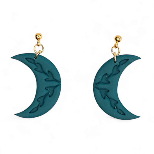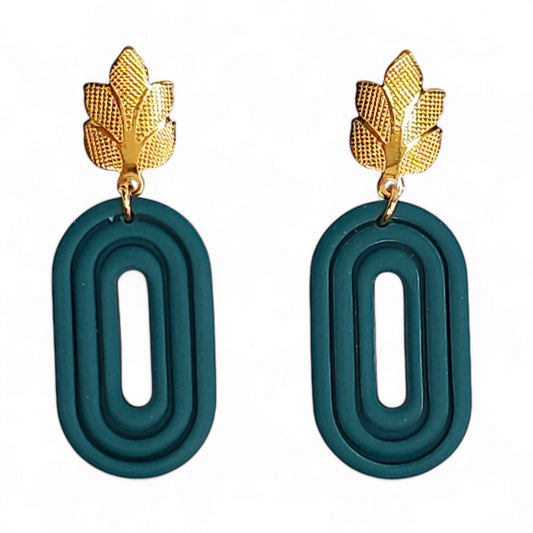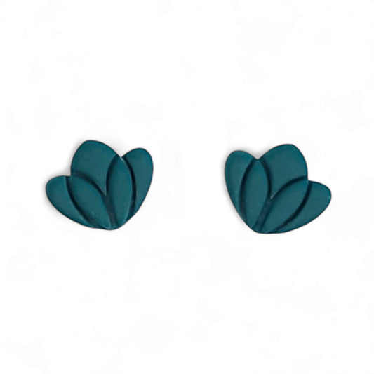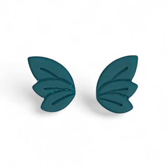 Σκουλαρίκια καρφωτά μικρά φύλλα πετρόλ από πολυμερικό πηλό