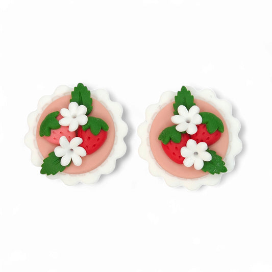 Τοσοδούλικα σκουλαρικάκια ροζ φραουλίτσες από πολυμερικό πηλό