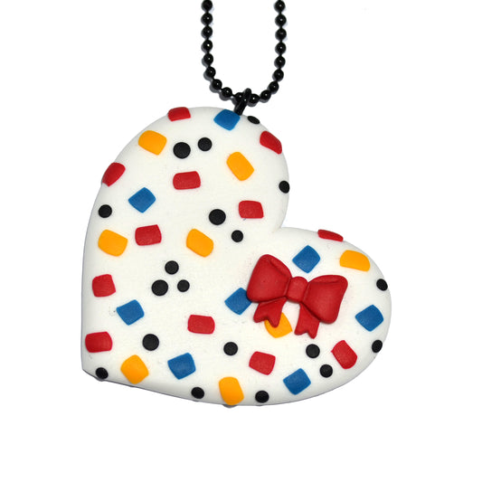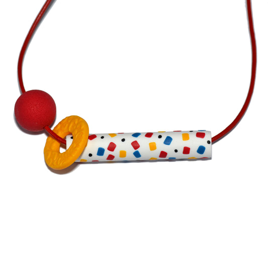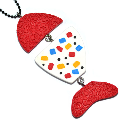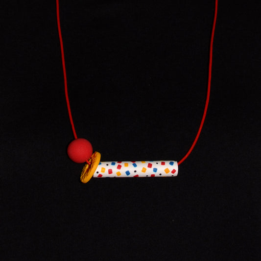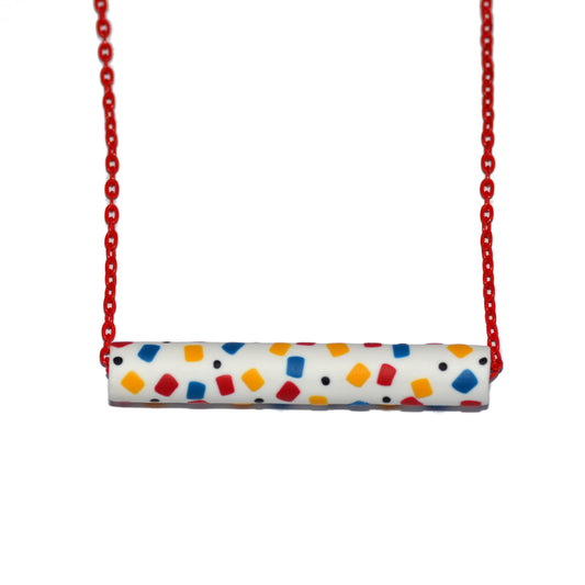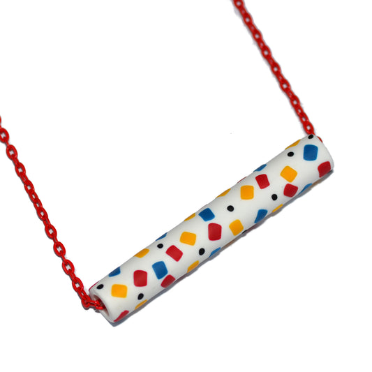 Γεωμετρικό κολιέ λευκός κύλινδρος με κόκκινη αλυσίδα απ'τη συλλογή Deconstructed Mondrian