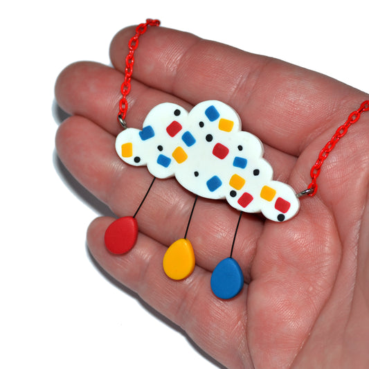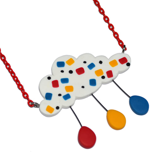 Κοντό κολιέ σύννεφο με πολύχρωμη βροχή και κόκκινη αλυσίδα