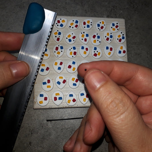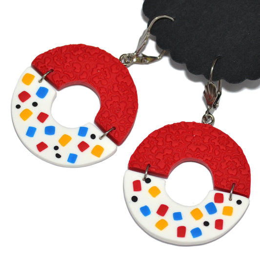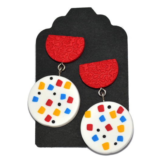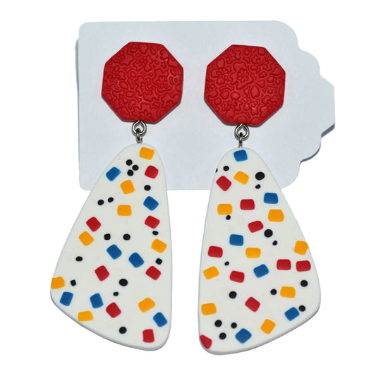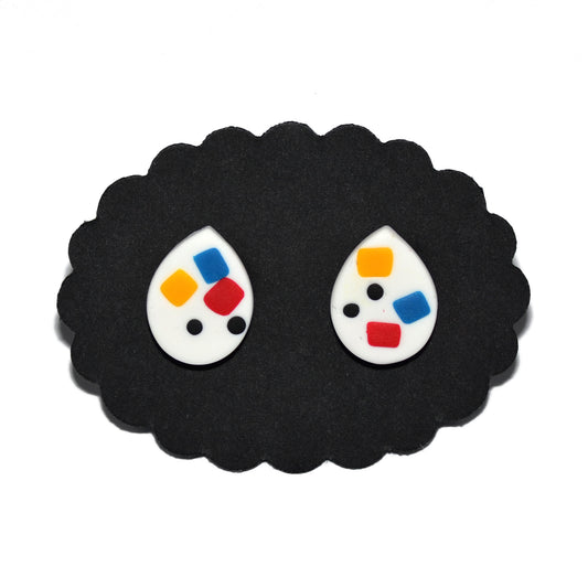 Καρφωτά σκουλαρίκια σταγόνες λευκά πιτσιλωτά με κόκκινο κίτρινο και μπλε