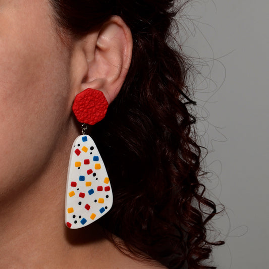 Κρεμαστά σκουλαρίκια απ'τη συλλογή Deconstucted Mondrian κόκκινο κίτρινο