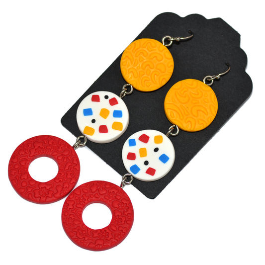 Μεγάλα σκουλαρίκια κρεμαστά κόκκινο κίτρινο μπλε σε λευκό φόντο