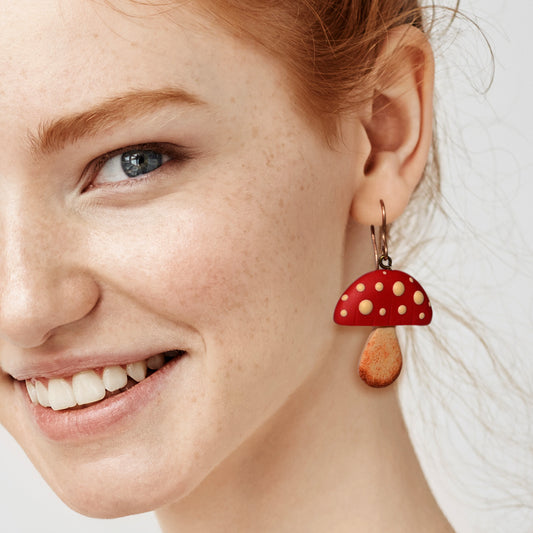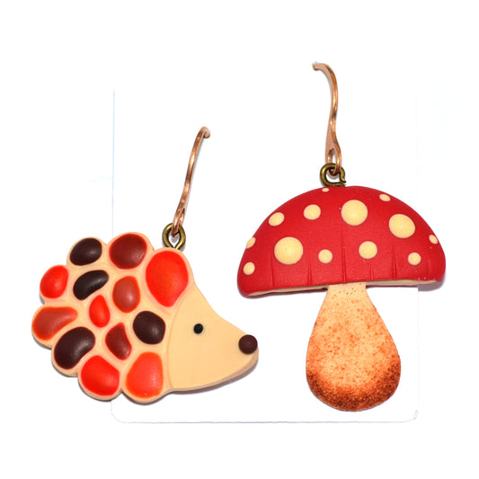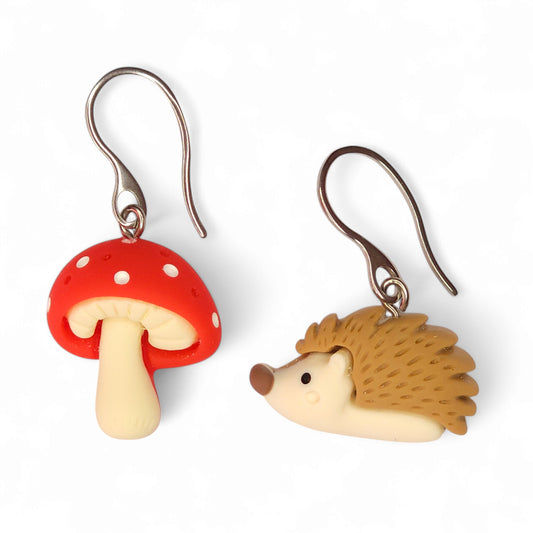 Ανόμοια κρεμαστά σκουλαρίκια καφέ σκαντζόχοιρος και κόκκινο μανιτάρι