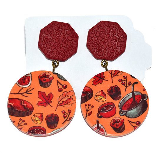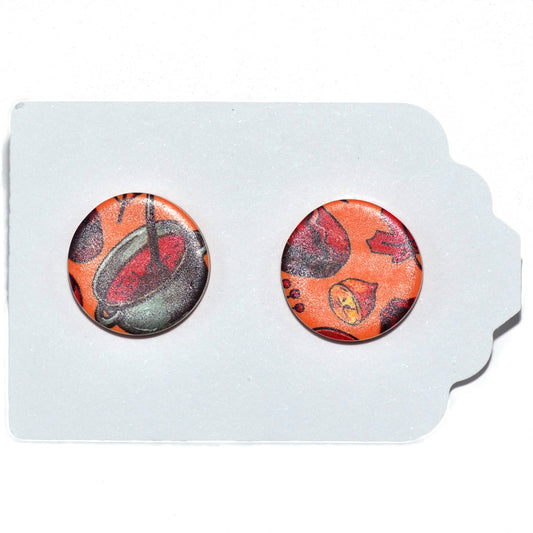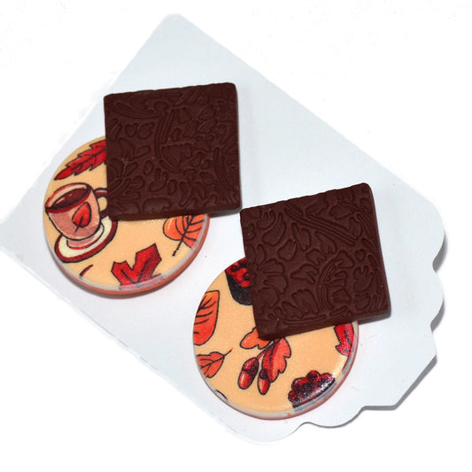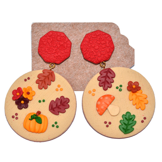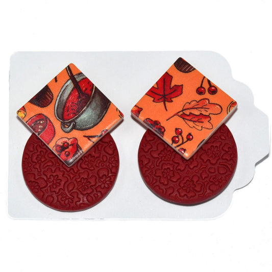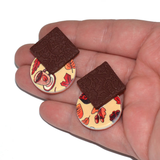 Μεγάλα καρφωτά σκουλαρίκια με φθινοπωρινό μοτίβο