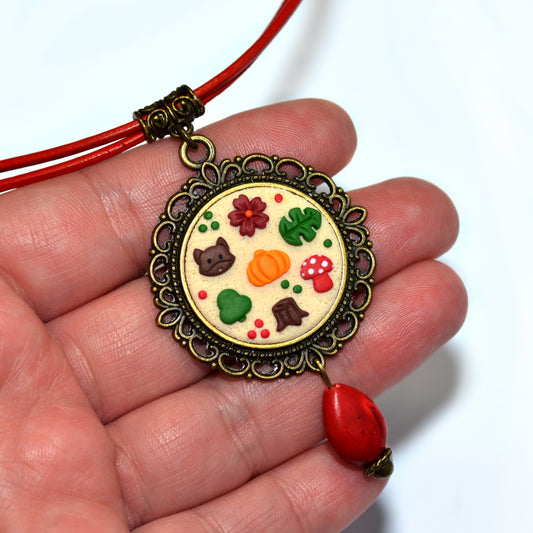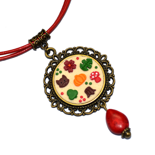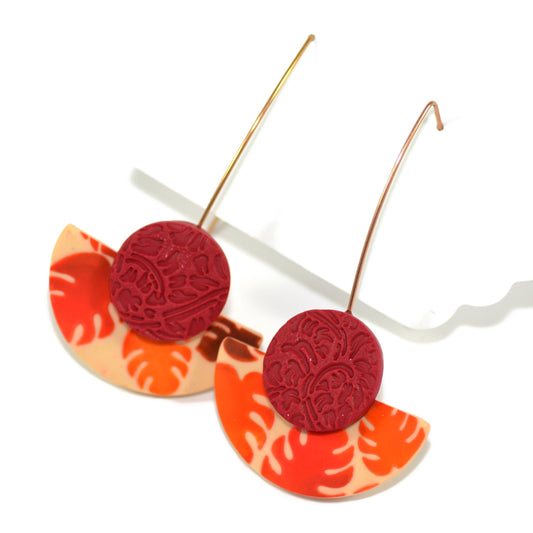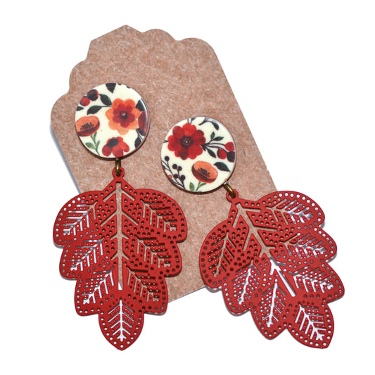 Κρεμαστά σκουλαρίκια με φθινοπωρινό μοτίβο και κόκκινα ατσάλινα φιλιγκράν