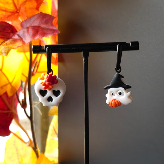 Ανόμοια σκουλαρίκια χαλογουίν φάντασμα νεκροκεφαλή από πολυμερικό πηλό
