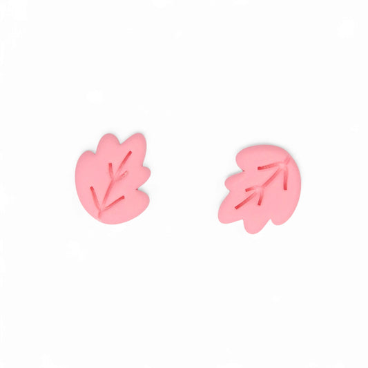 Μικρά καρφωτά σκουλαρίκια ροζ φύλλα από πολυμερικό πηλό