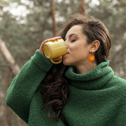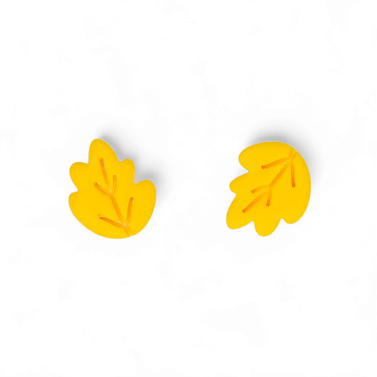 Σκουλαρίκια καρφωτά φυλλαράκια πορτοκαλοκίτρινα γλυπτά στο χέρι