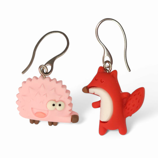 Ανόμοια κρεμαστά σκουλαρίκια ροζ σκαντζόχοιρος και κόκκινη αλεπού