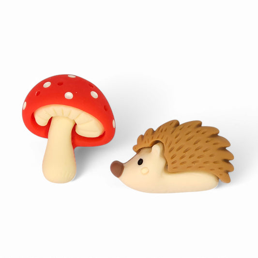 Μεγάλα ανόμοια καρφωτά σκουλαρίκια καφέ σκαντζόχοιρος και κόκκινο μανιτάρι