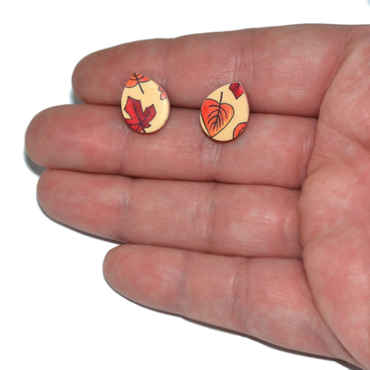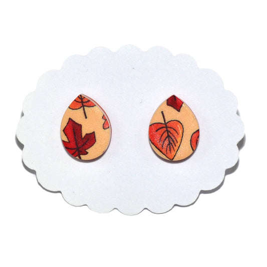 Καρφωτά σκουλαρίκια σταγόνες με φθινοπωρινό μοτίβο