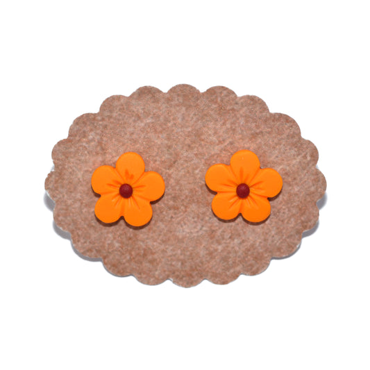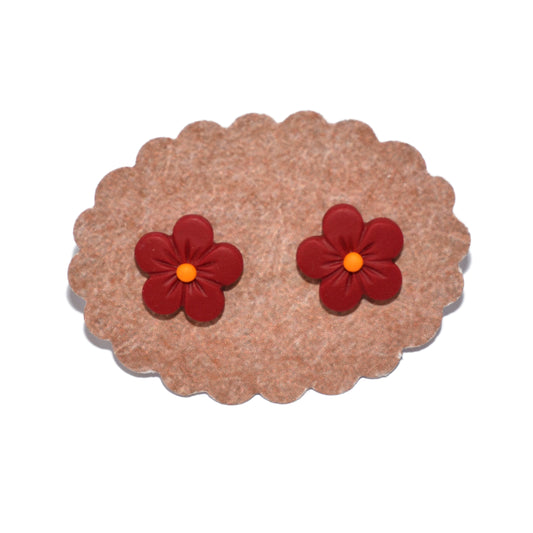 Σκουλαρίκια καρφωτά λουλουδάκια κιτρινο-πορτοκαλί με λίγο μπορντό