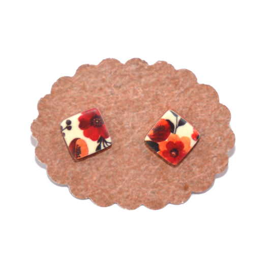 Καρφωτά μικρά τετράγωνα σκουλαρίκια με φθινοπωρινό μοτίβο