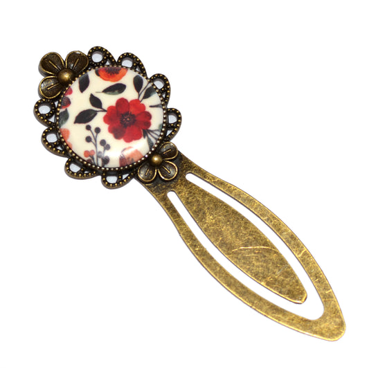 Μεταλλικός βίνταζ μπρονζέ σελιδοδείκτης με φθινοπωρινό λουλουδάτο μοτίβο