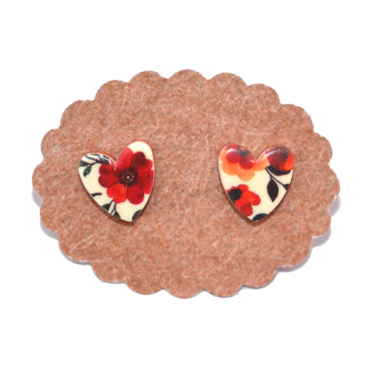 Καρφωτά σκουλαρίκια καρδιές με φθινοπωρινό μοτίβο