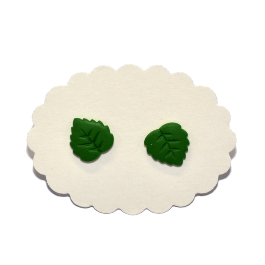 Σκουλαρίκια καρφωτά φυλλαράκια πράσινα από πολυμερικό πηλό