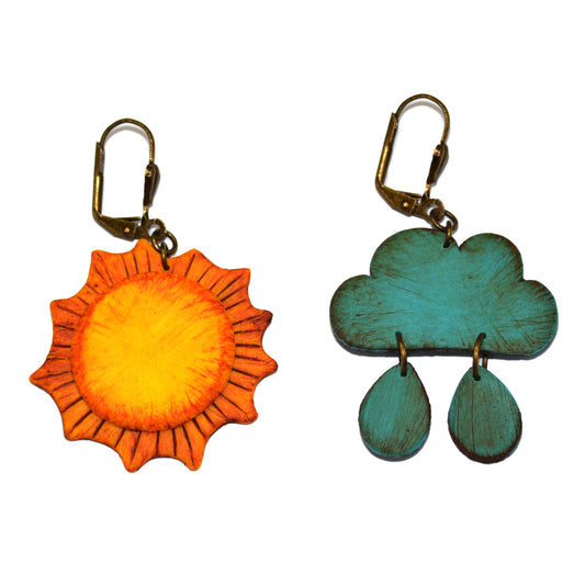 Σκουλαρίκια ανόμοια κρεμαστά ήλιος με βροχή
