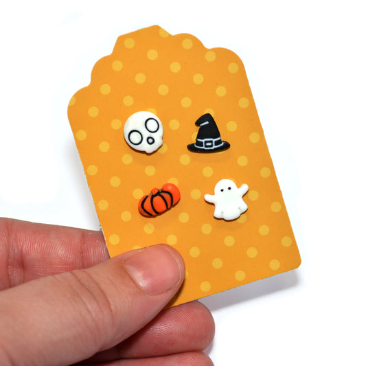 Δύο ζευγάρια σκουλαρικάκια Halloween φάντασμα καπέλο μάγισσας νεκροκεφαλή κολοκύθα