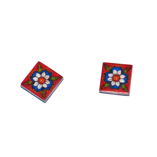 Καρφωτά σκουλαρίκια μίνι πλακάκια κόκκινα λουλούδια