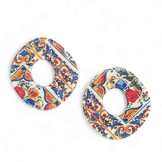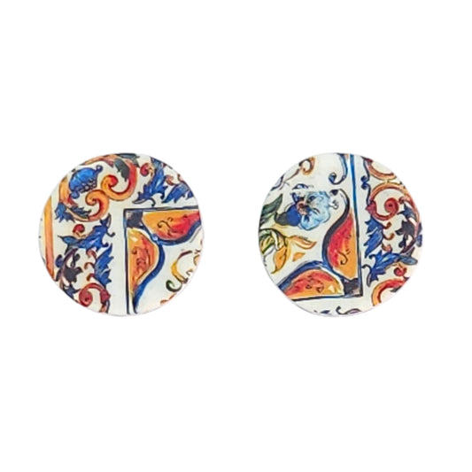 Καρφωτά σκουλαρίκια στρογγυλά με μοτίβο πολύχρωμα πλακάκια από πολυμερικό πηλό