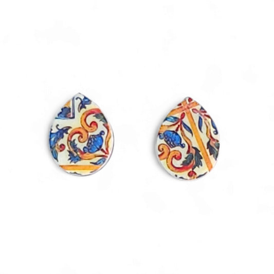 Καρφωτά σκουλαρίκια δάκρυα με μοτίβο πολύχρωμα πλακάκια από πολυμερικό πηλό