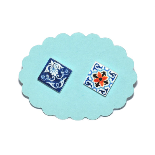 ΕξαντλήθηκεΚαρφωτά ανόμοια σκουλαρίκια μίνι πλακάκια μπλε