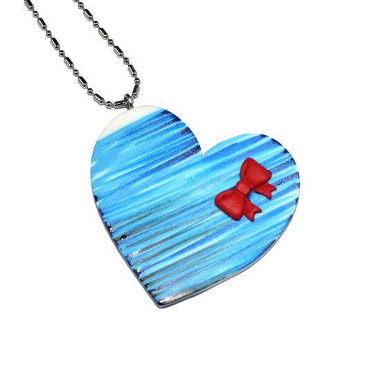 Μακρύ κολιέ καρδιά ριγέ τυρκουάζ με κόκκινο φιόγκο απ'τη συλλογή For the love of summer
