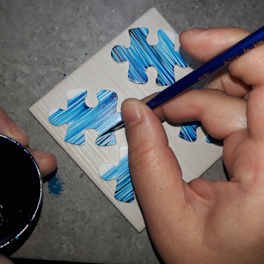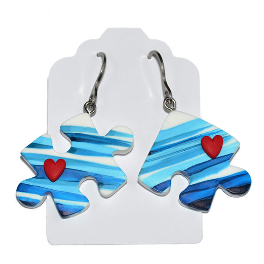 Κρεμαστά σκουλαρίκια παζλ ριγέ τυρκουάζ με κόκκινες καρδιές απ'τη συλλογή For the love of summer