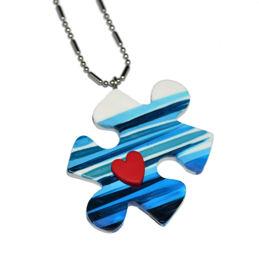 Μακρύ κολιέ παζλ ριγέ τυρκουάζ με κόκκινη καρδιά απ'τη συλλογή For the love of summer