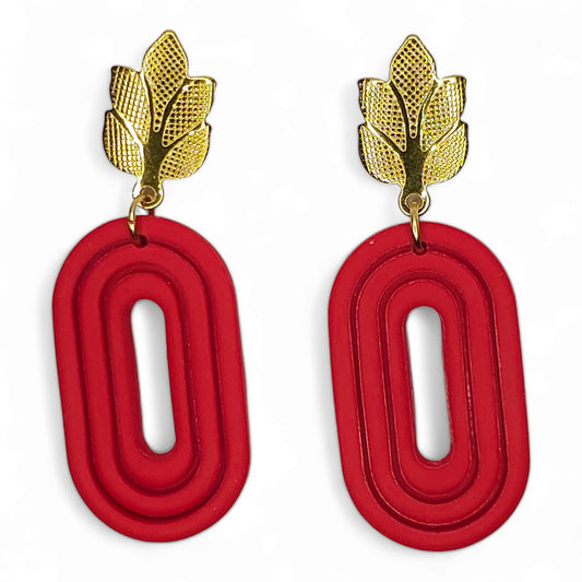 Σκουλαρίκια κρεμαστά κόκκινα με χρυσά ατσάλινα φύλλα