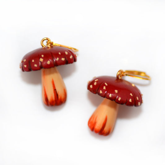 Κρεμαστά σκουλαρίκια μπορντό μανιταράκια γλυπτά με πολυμερικό πηλό